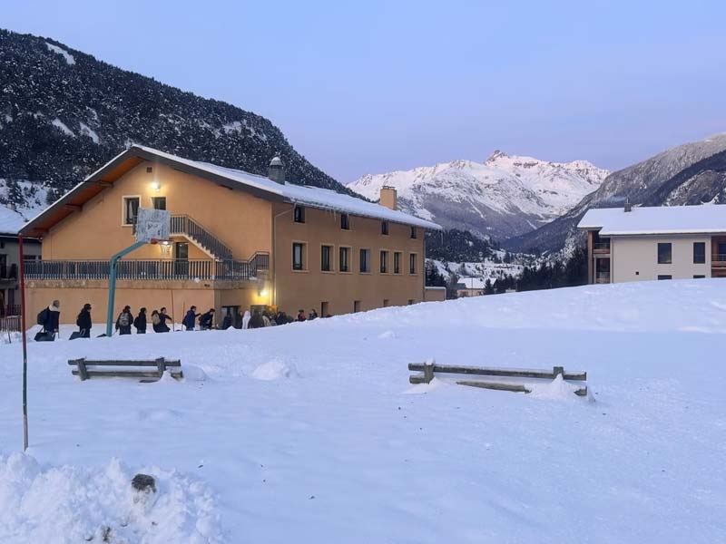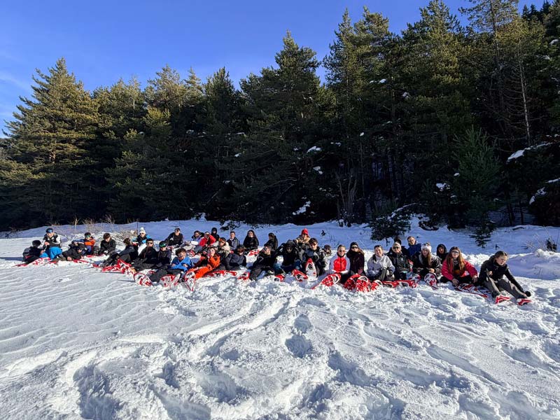 Demain une journée différente s’annonce : les élèves travailleront à rattraper leur cours pendant 2h le matin, nous partirons en randonnée raquettes l’après-midi.