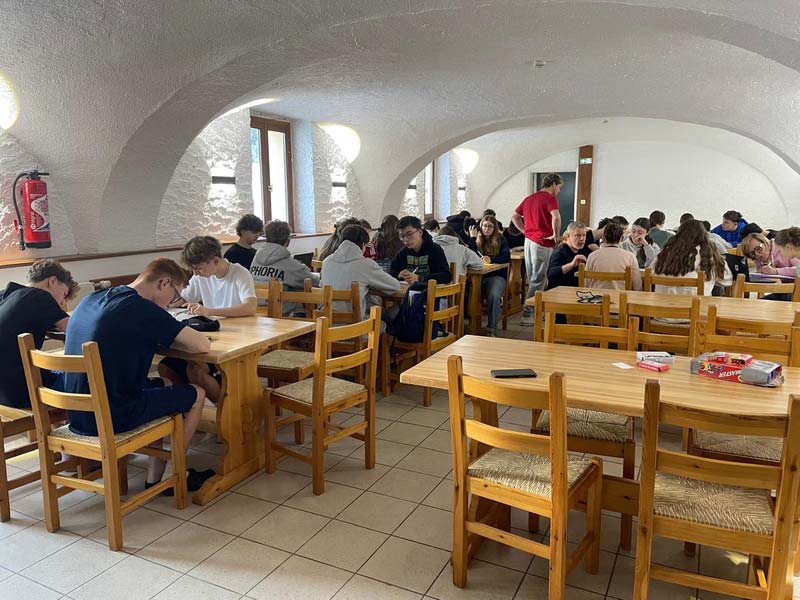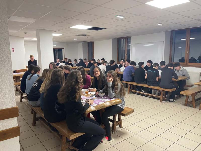 Demain une journée différente s’annonce : les élèves travailleront à rattraper leur cours pendant 2h le matin, nous partirons en randonnée raquettes l’après-midi.